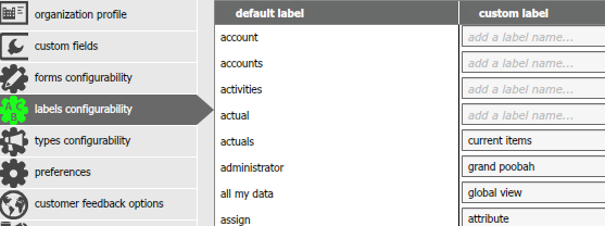 2. Select labels configurability from the menu on the left.