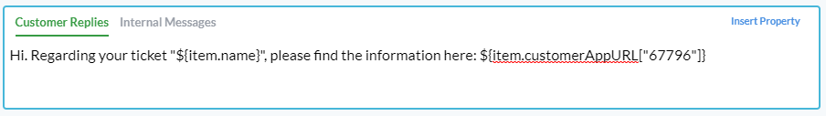 Al enviar mensajes enlatados internamente, puede insertar propiedades en los mensajes: