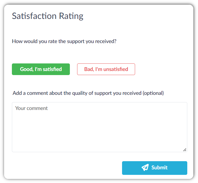 A satisfaction survey allows you to receive feedback and ratings on your support from your customers.
