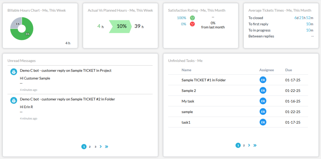 Your user dashboard is an all-in-one place to see you and your team’s work. Easily keep track of all your assignments, tickets, timesheets, and more.
