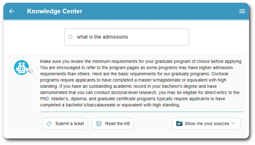 Améliorez votre support client et votre libre-service grâce à l’IA. L’IA peut vous aider à synthétiser et à répondre aux questions des clients lors de leurs recherches dans votre base de connaissances. Elle peut également réduire les tickets en suggérant des solutions avant la soumission du formulaire.