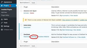 Ce processus est maintenant rendu encore plus simple avec la création de ce plugin WordPress. Suivez simplement les étapes d’installation ci-dessous pour fournir à vos clients un accès rapide au widget OneDesk.