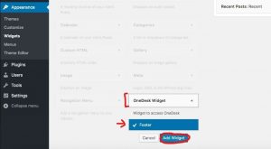 Étape 9: Accédez au widget OneDesk et assurez-vous de l’ajouter au «Pied de page». Une fois terminé, cliquez sur «Ajouter un widget».