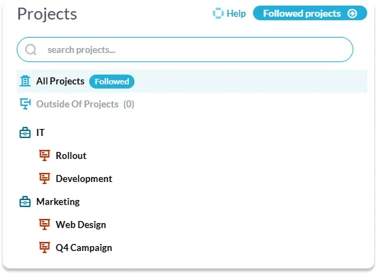 • Portfolios – Top level grouping that contain projects. Use portfolios to group together related projects.