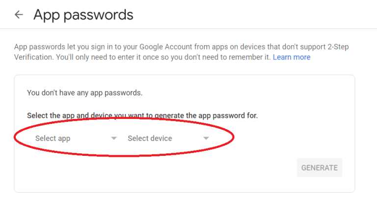 Step 1: Go to: https://myaccount.google.com/apppasswords (Not available? Head to this step).