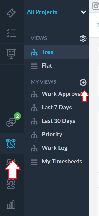 1) In the timesheets application click the “New view” icon