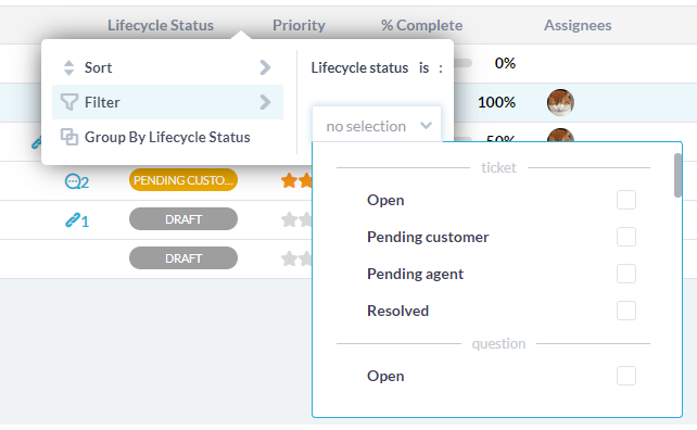 U prošlim izdanjima dodali smo mogućnost grupiranja i sortiranja izravno iz zaglavlja rešetke. Sada smo dodali i mogućnost brzog filtriranja. Na primjer, iz zaglavlja stupca statusa filtrirajte prema ‘Otvoreno’ ulaznicama, a zatim iz grupe zaglavlja primatelja prema primatelju.