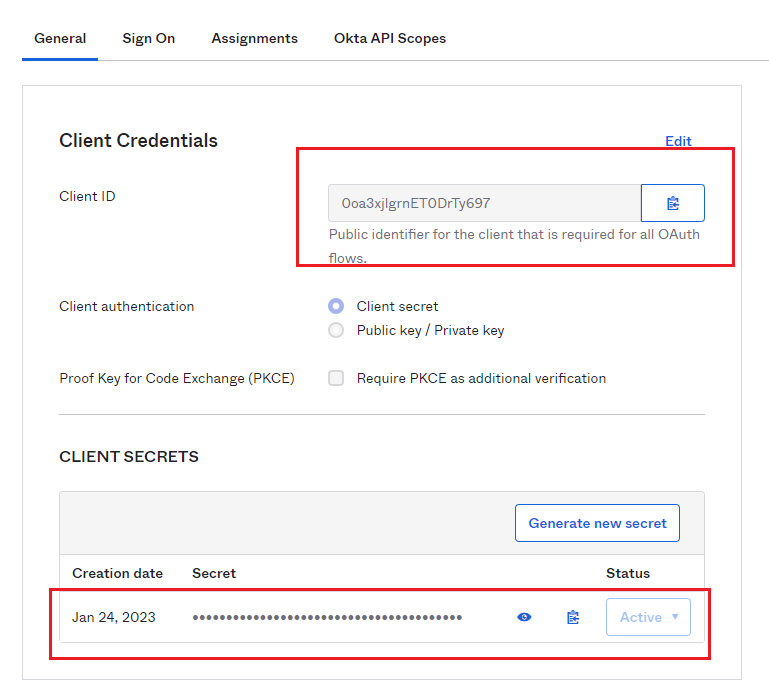 6A) OpenID: Copy your Client ID and Client secret from Okta