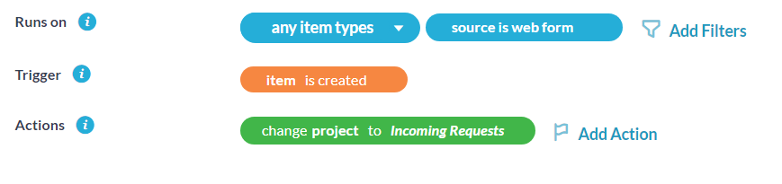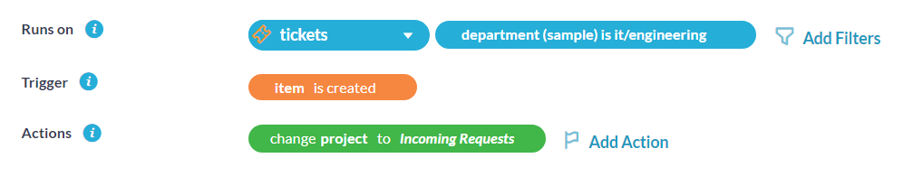 Questa automazione verrà eseguita sul tipo di ticket appropriato, verrà attivata al momento della creazione e verrà indirizzata al progetto appropriato.