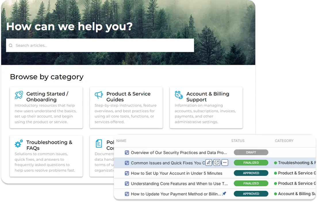 Reduce ticket volume by empowering your customers with a repository of knowledge base articles. With AI integration, the knowledge base doesn’t just search, it provides summarized and accurate answers.