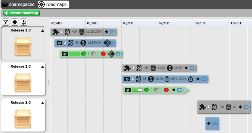 you can plan out releases based on available resources, and automatically track their progress as they are executed. Visual plans of costs, work and schedules help companies improve long and short term decision making through more accurate analyses and estimates. No more tedious creation of roadmaps in external tools. Simply export and you are ready to present plans and progress.