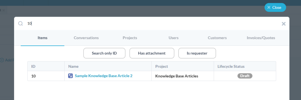 • You can now search for invoices / quotes with a new tab in the global search. (Access to this search option is limited for those with ‘Financials’ access only)