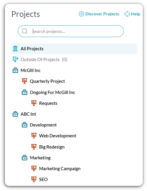 Een veel voorkomende configuratie is het maken van portfolio’s om verschillende teams of afdelingen te vertegenwoordigen. Binnen elke portefeuille bevinden zich de verschillende projecten waar het team aan werkt. Een andere configuratie is het gebruik van portfolio’s om de klanten die u bedient te vertegenwoordigen, met elk van hun projecten in de betreffende portfolio.