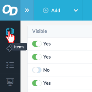 Trinn 5: Du bør se elementvisningen helt øverst i tabellen. Klikk på veksleikonet i vareraden for å slå det på.