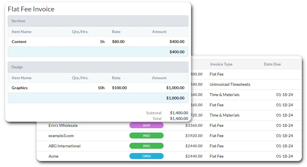 Forhindre at prosjekter går over budsjett ved å overvåke fremdrift og kostnader i sanntid. Send tilbud basert på prosjektmalene dine. Lag fakturaer for prosjekter eller sporet tid.