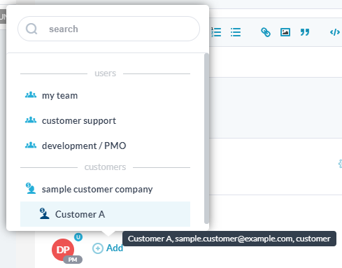 Nå er det siste du må gjøre å sørge for at du har lagt kunden til prosjektene du vil at de skal se. Du kan gjøre dette på prosjektets detaljpanel ved å legge til kunden som følger av prosjektet. Gjør dette for hvert prosjekt du vil at de skal se.