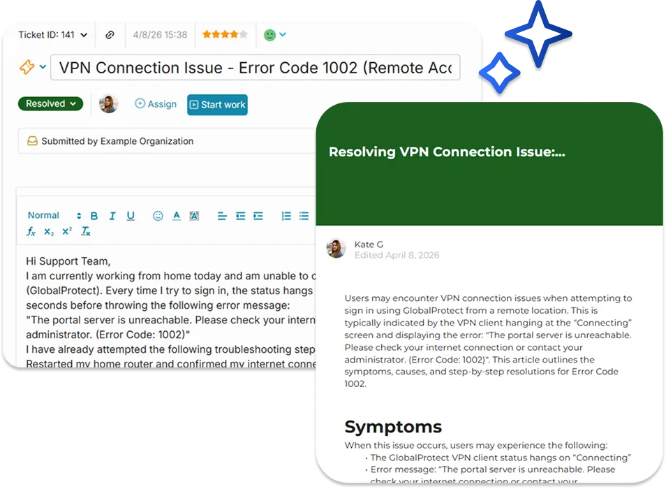 Unlock all the benefits of adding AI powered knowledge base article generation.