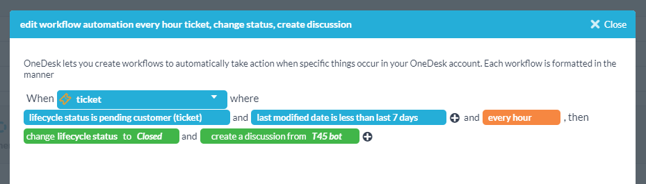 В этом сообщении в блоге я хочу пройтись по OneDesk’s Автоматизация рабочего процесса инструмент. Я начну с описания, что это такое, что он делает и как работает. Затем я приведу несколько примеров того, чего вы можете достичь с его помощью.