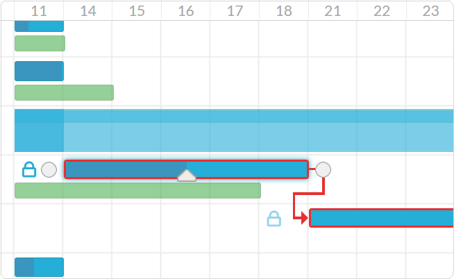 全面、精细地控制您的项目进度。 延长或收缩条形图以更改计划持续时间。 沿时间线拖动您的任务和项目以更改计划的时间表。 从分钟级别到年级别的任意位置放大和缩小甘特图。