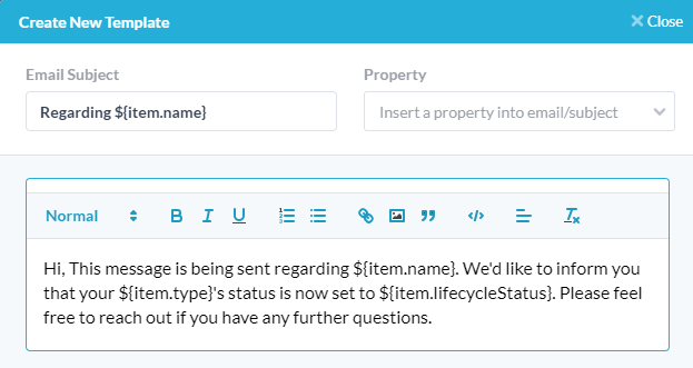 - Utilice una plantilla de correo electrónico escrita previamente con propiedades insertadas