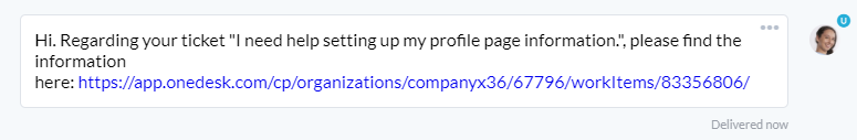 - Le permite realizar un seguimiento del flujo de conversación entre usted y sus clientes directamente dentro de OneDesk.