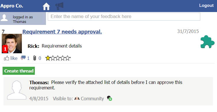 Your customer will then be able to log in to the portal to discuss, clarify or approve any of the requirements that you have published.